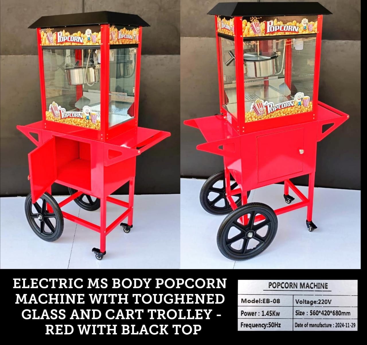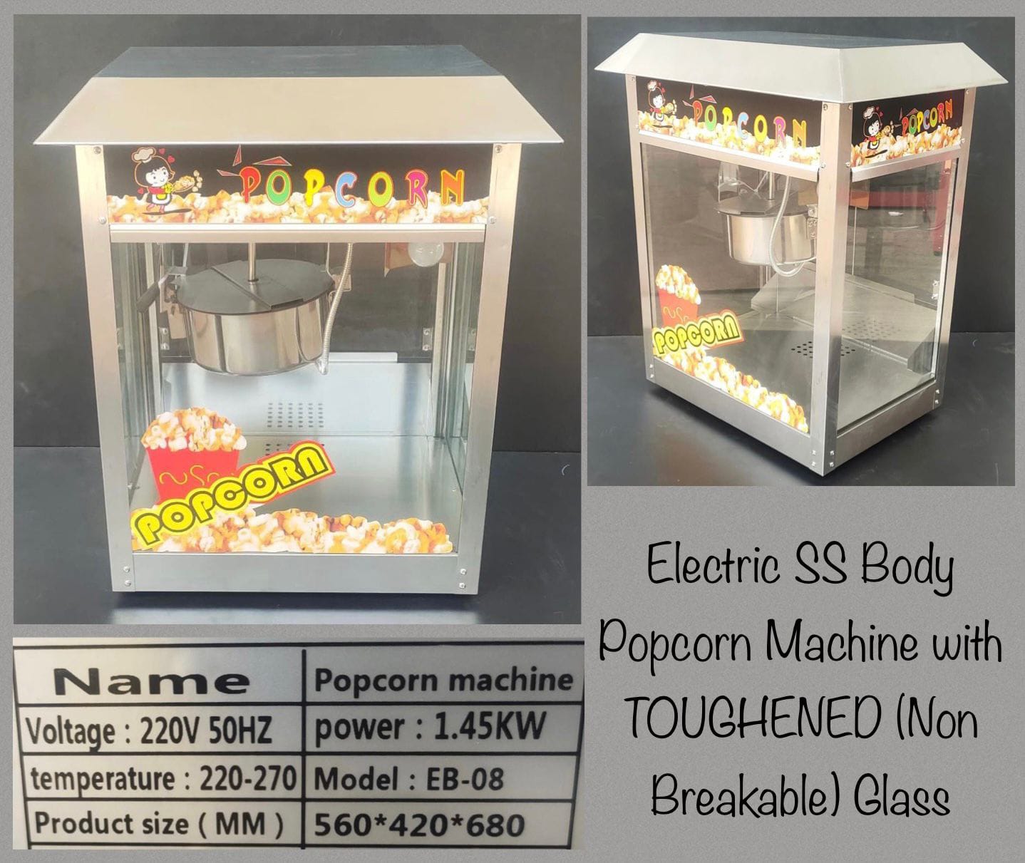 The Commercial Popcorn Machine is designed for theatres, multiplexes, events, fairs, food stalls, and restaurants to produce large quantities of fresh, crispy popcorn. Built with a stainless steel kettle and transparent glass body, it allows customers to see the popcorn popping, adding attraction to your business. Its powerful heating element ensures fast production while maintaining consistent taste and crunch. Easy to operate and clean, this machine is perfect for commercial as well as semi-commercial use.