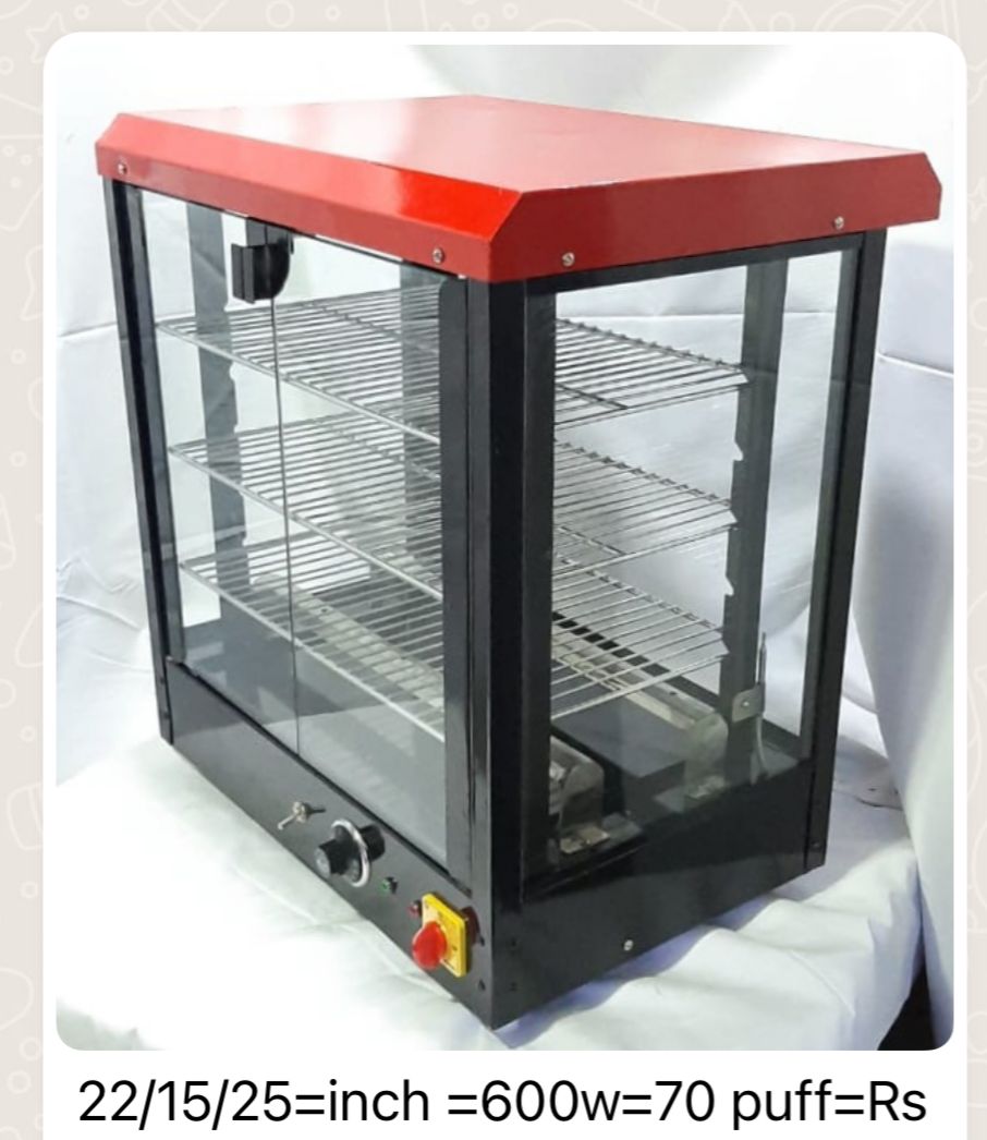 Keep your snacks fresh, warm, and ready to serve with the Imported Puff Warmer. Specially designed for commercial kitchens, bakeries, cafes, and food stalls, this warmer maintains the perfect temperature for puffs, patties, samosas, and other baked items. Its clear glass display enhances product visibility while the stainless-steel body ensures hygiene and durability. Whether you run a bakery or a catering business, this puff warmer helps you serve hot and delicious snacks every time.