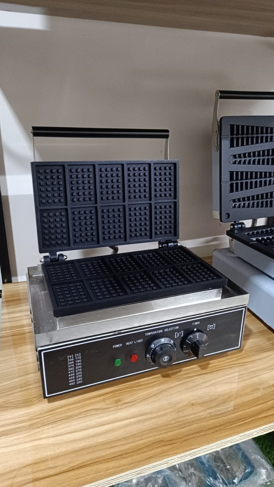 Upgrade your café or restaurant with our TEN Square Biscuit Waffle Machine, designed for high-volume commercial use. This heavy-duty waffle maker features 10 perfectly shaped square molds for uniform, crispy waffles every time. Made from durable, food-grade materials, it ensures long-lasting performance and easy cleaning. Ideal for hotels, restaurants, bakeries, and catering businesses looking to serve delicious waffles quickly and efficiently.